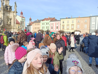 V úterý 4. března 2025 jsme se s dětmi ze zájmových kroužků školní družiny – Povídálek, Koumák a Přírodovědný kroužek – vydali na masopust v Uničově. Cílem naší výpravy bylo Masarykovo náměstí, kde se konal tradiční masopustní rej. Už od prvního okamžiku nás pohltila atmosféra hudby a veselí. Náměstí se hemžilo pestrými maškarami, které se předháněly v originalitě a vtipu. Děti s nadšením sledovaly průvod, obdivovaly strom ověšený jitrnicemi a nápadité kostýmy. Od jedné z masek dokonce dostaly sladkou odměnu v podobě čokoládových penízků, což jim udělalo obrovskou radost. Sluníčko se na nás ten den usmívalo a počasí nám přálo, takže jsme si masopustní veselí mohli vychutnat naplno. Děti si masopust v Uničově opravdu užily a odnesly si z něj dobrou náladu a spoustu krásných zážitků.